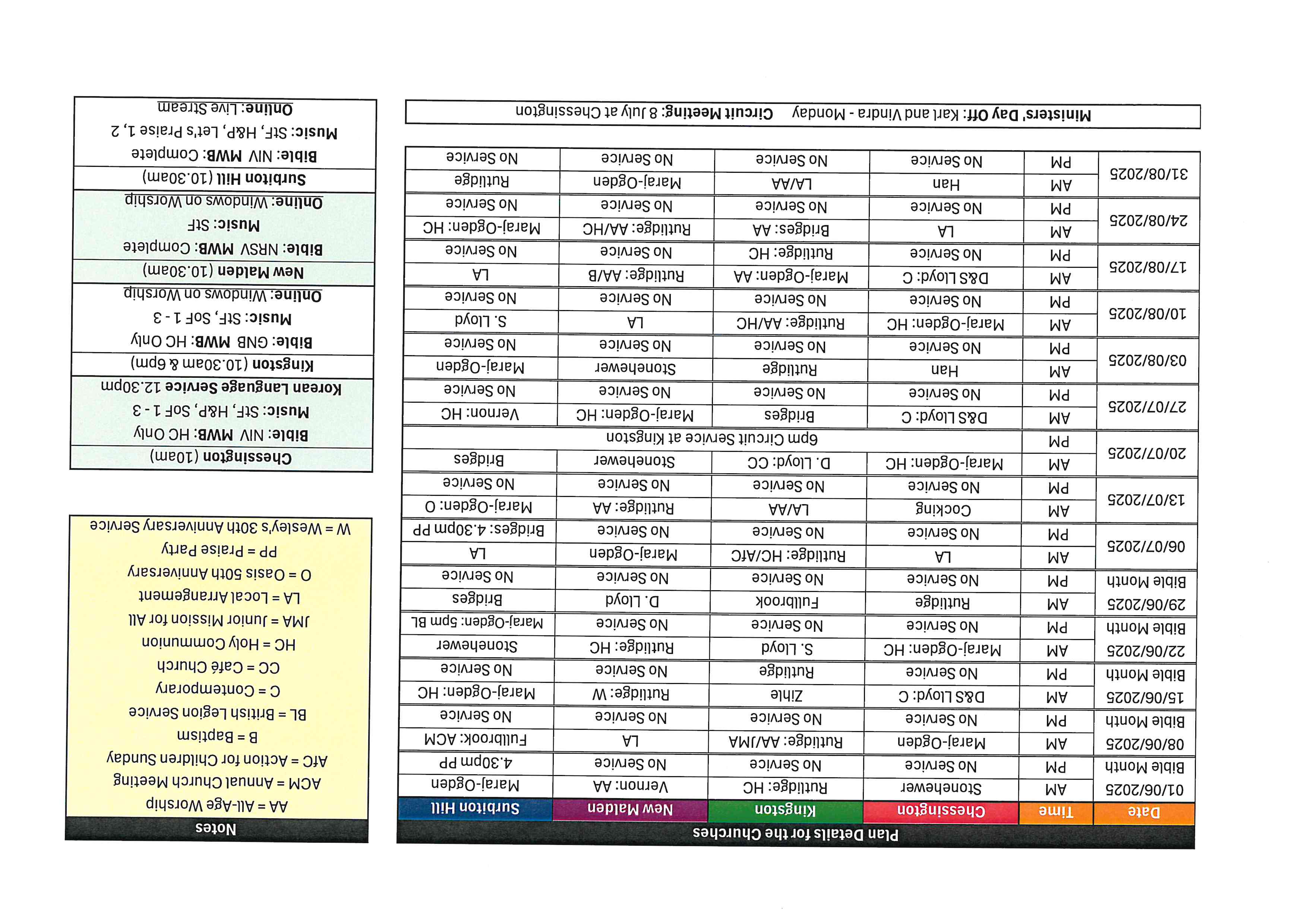 Plese click on the relevant dates to find specific details of all services