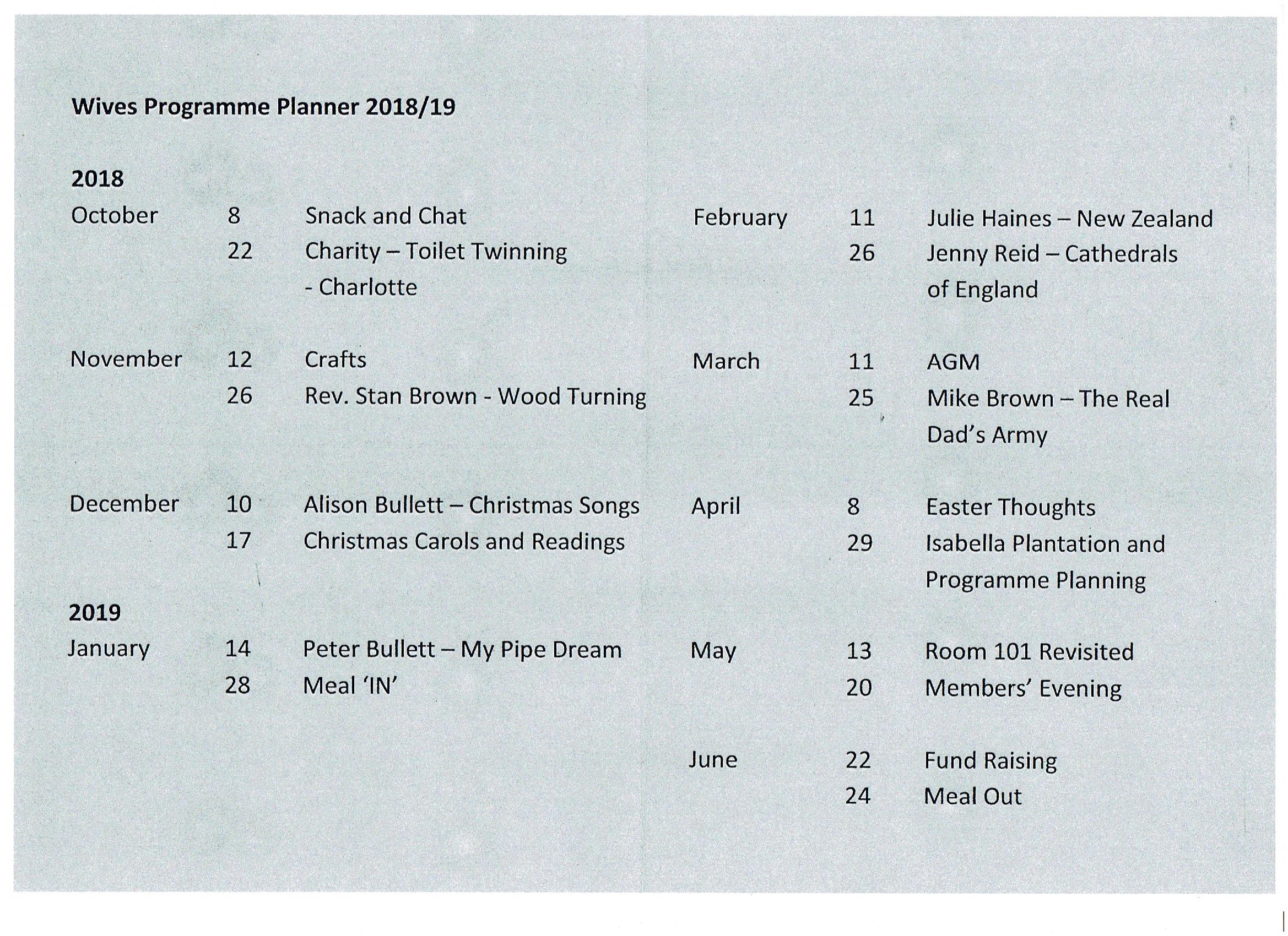 Wives & Friends – Tuesdays 7.30pm (twice a month)